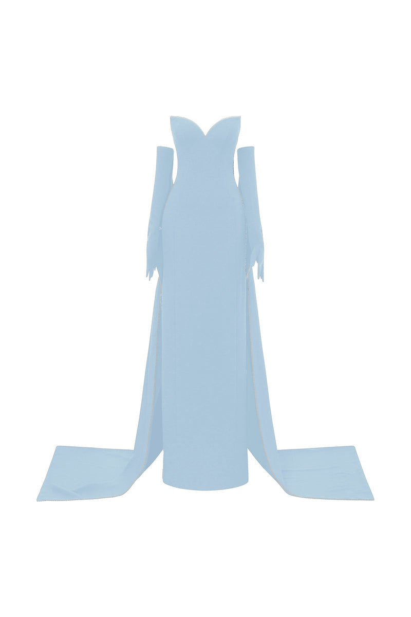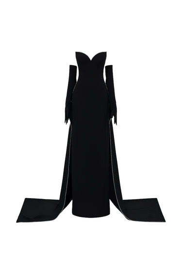 - قفازات طويلة ذات قماش متدلٍ يلامس الأرض