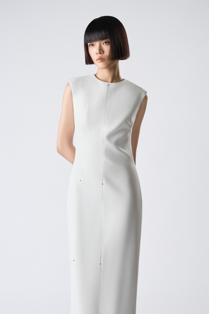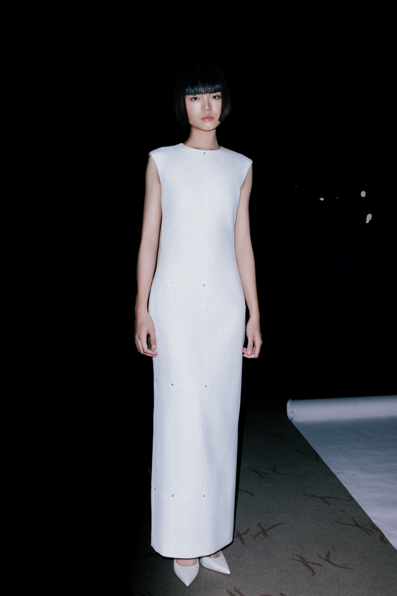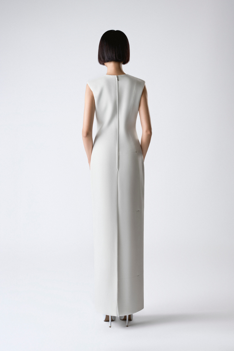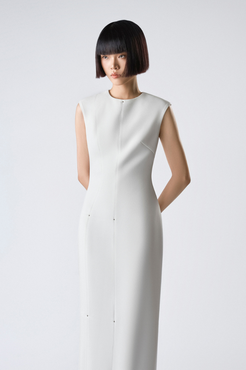كريب أبيض حليبي مُهيكل بقصّة مستقيمة من الكتف إلى الحافة. مُصمّم بخطوط دقيقة لمنحه شكلاً أنيقاً، مع الحفاظ على نعومة سطحه. بدون أي زخارف أو مبالغة - فقط شكل نقي، وتناسق مثالي، وخامة راقية. تعبيرٌ صامت عن الحضور.
