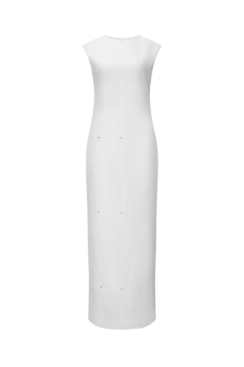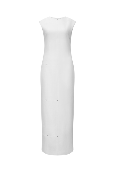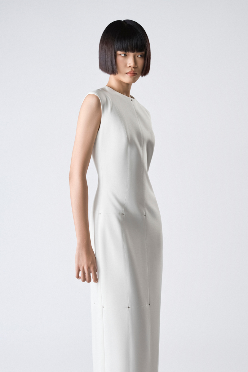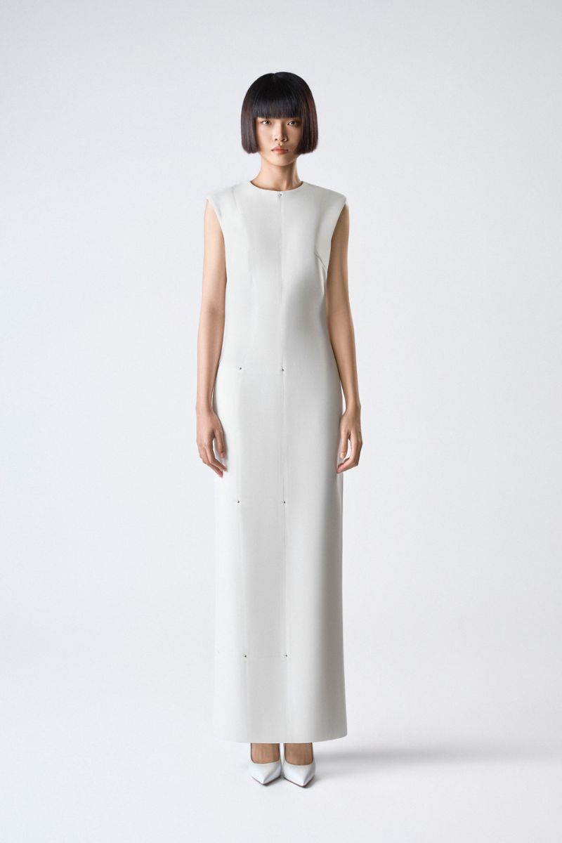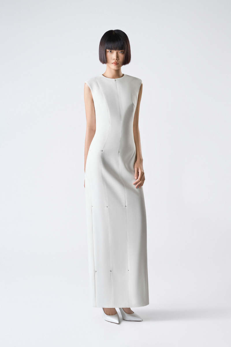 كريب أبيض حليبي مُهيكل بقصّة مستقيمة من الكتف إلى الحافة. مُصمّم بخطوط دقيقة لمنحه شكلاً أنيقاً، مع الحفاظ على نعومة سطحه. بدون أي زخارف أو مبالغة - فقط شكل نقي، وتناسق مثالي، وخامة راقية. تعبيرٌ صامت عن الحضور.