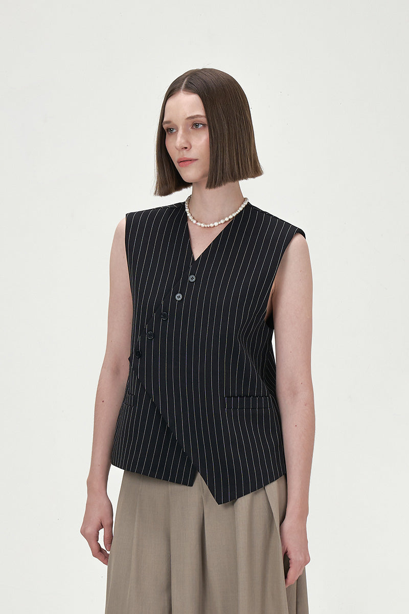 The Vivien Waistcoat is a timeless essential for every closet. With its tailored fit and subtle asymmetrical cut, this waistcoat is bound to elevate any ensemble. It's the kind of piece you'll find yourself reaching for time and time again, thanks to its versatility and effortless style. Whether dressed up or down, it's a garment you'll wash and wear with ease, making it a must-have staple in your wardrobe.