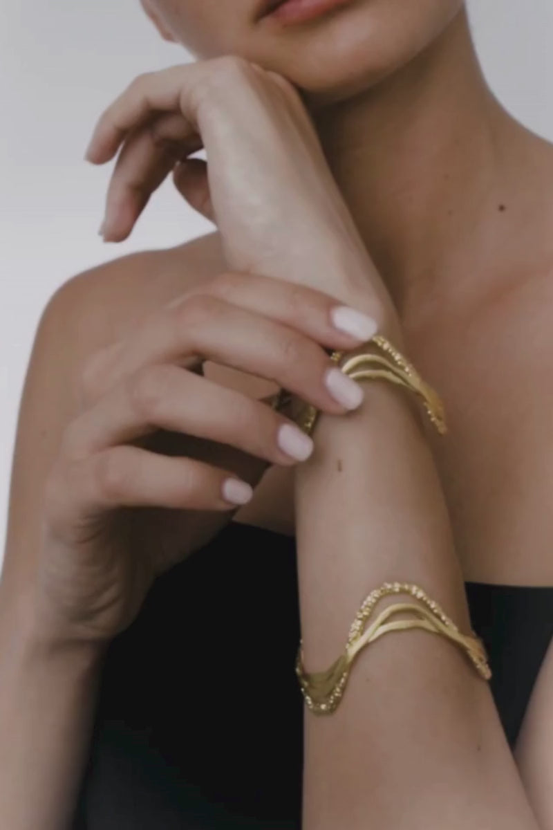 The Ripple Bracelet oscillates and intertwines into its layers, mimicking the waves of Saharan desert dunes, so you can take the desert with you wherever you go.