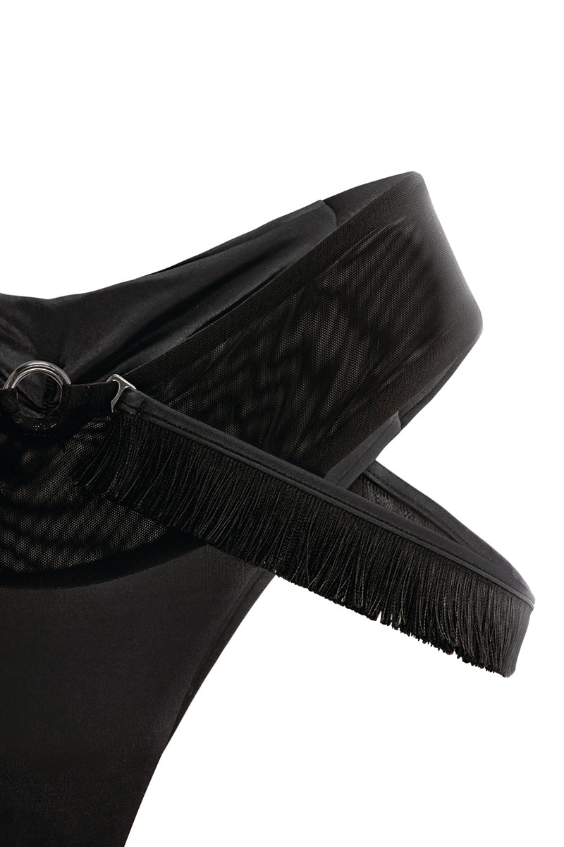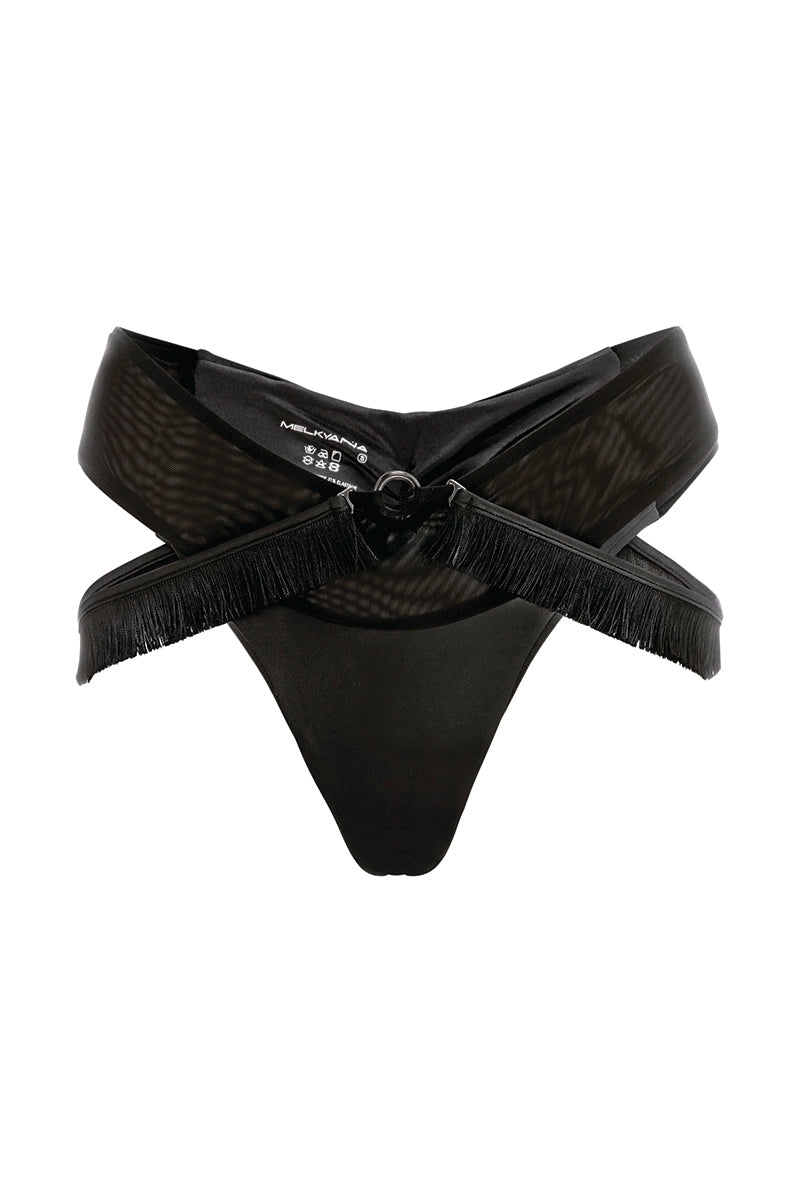 - The high-waist bottom features a cheeky cut and a removable tassel belt, adding a touch of style and versatility.