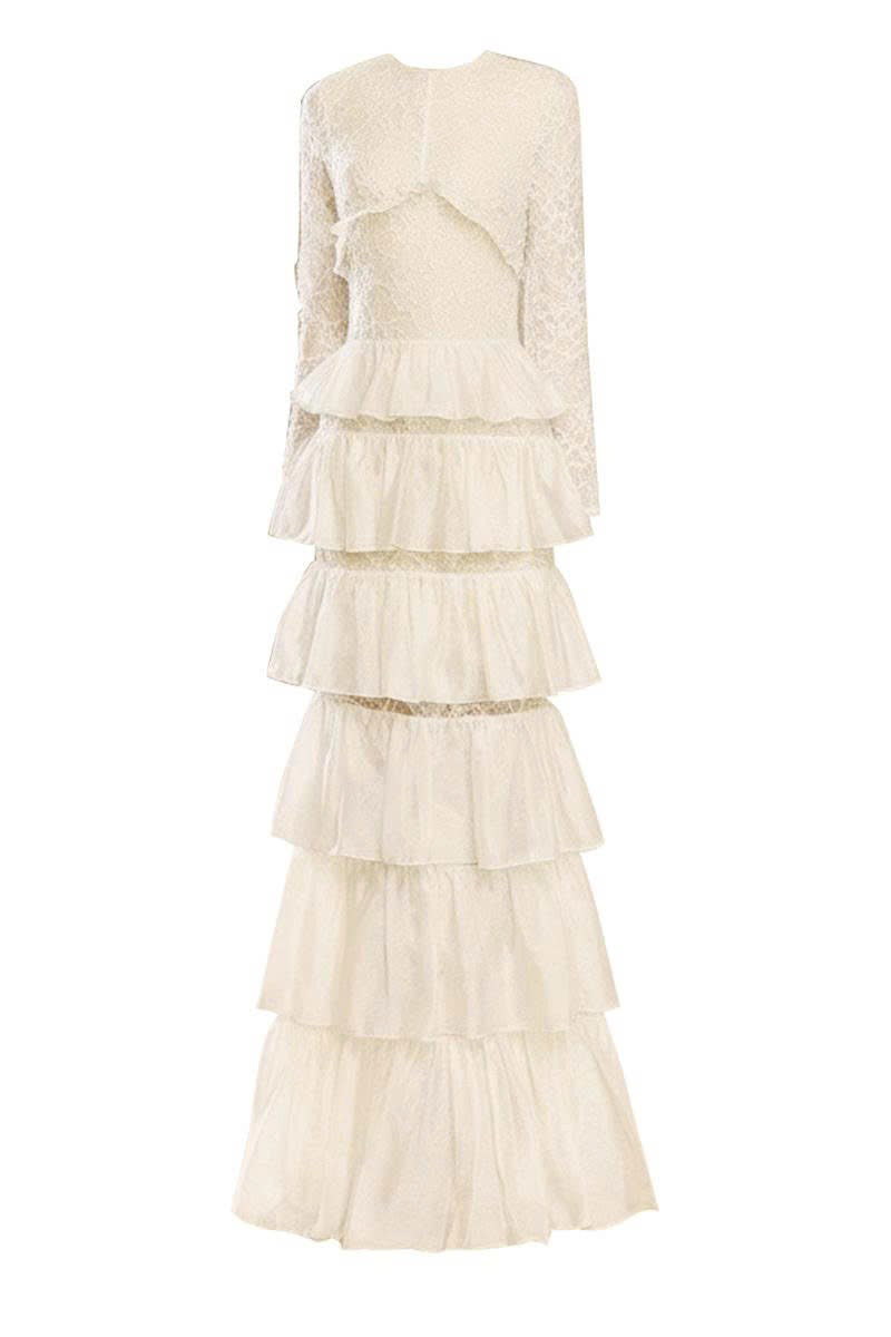 - Tiered ruffle detailing, sculpting the figure and enhancing movement