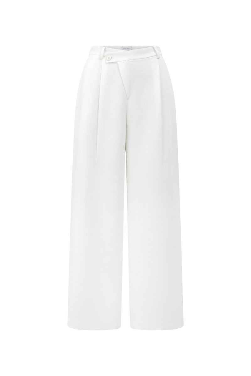 These pants are designed to make a statement with their unique features. The asymmetrical waistband and diagonal fly detail add a touch of edginess to the overall look. The loose fit ensures both comfort and ease of movement, while the mid-waist design flatters your figure.