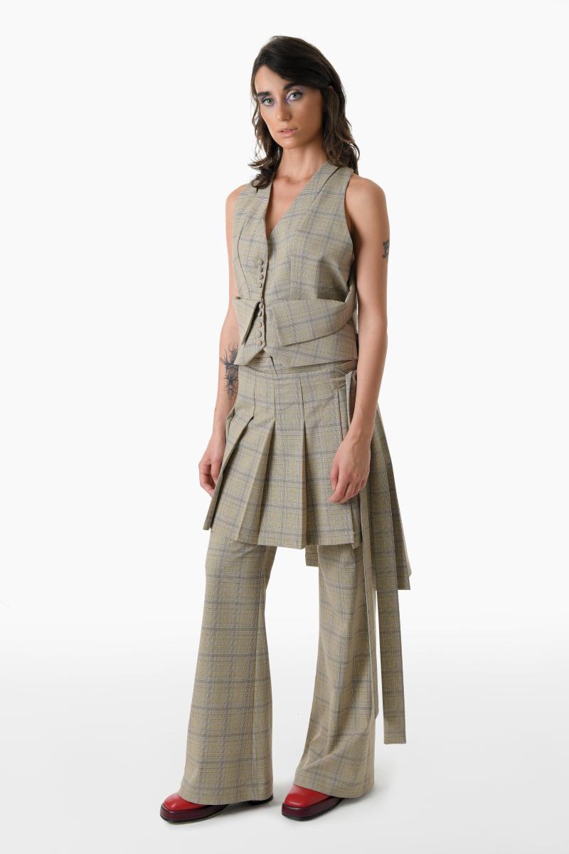 - Wide-legged trousers with a matcghing pleated skirt overlay