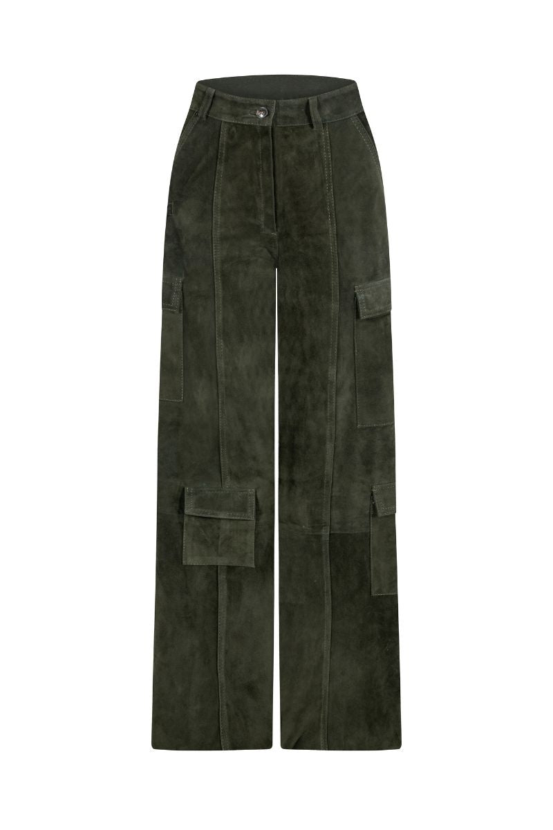 - Deep green suede pants