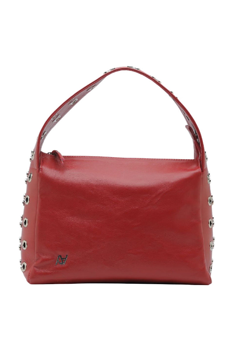 - Leather shoulder bag featuring studs and eyelets on the handle