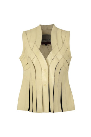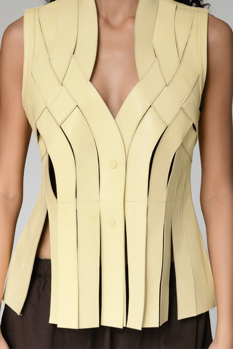 brianna leather vest in butter yellow