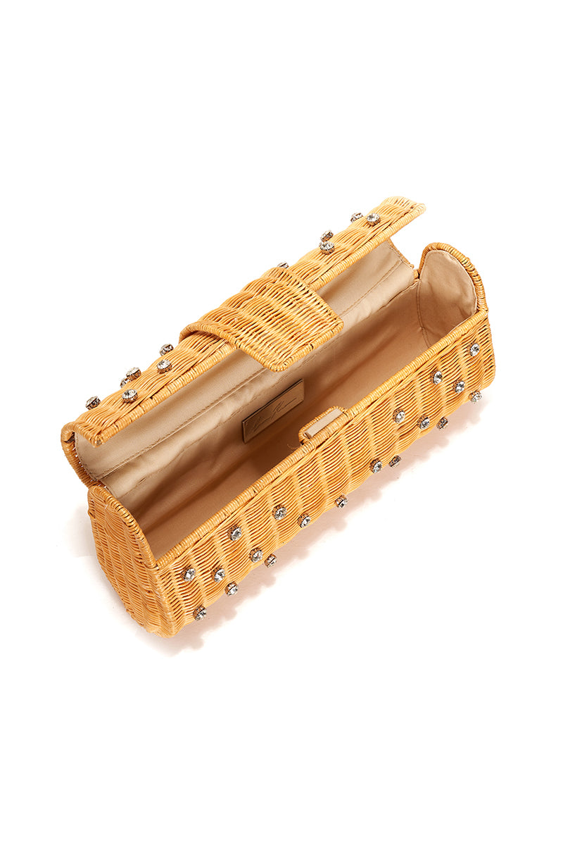 A clutch designed with intention, The Paloma balances natural texture with subtle shine. Handwoven from classic wicker and accented with scattered rhinestones, it brings a sense of ease to evening dressing-refined without feeling fussy.