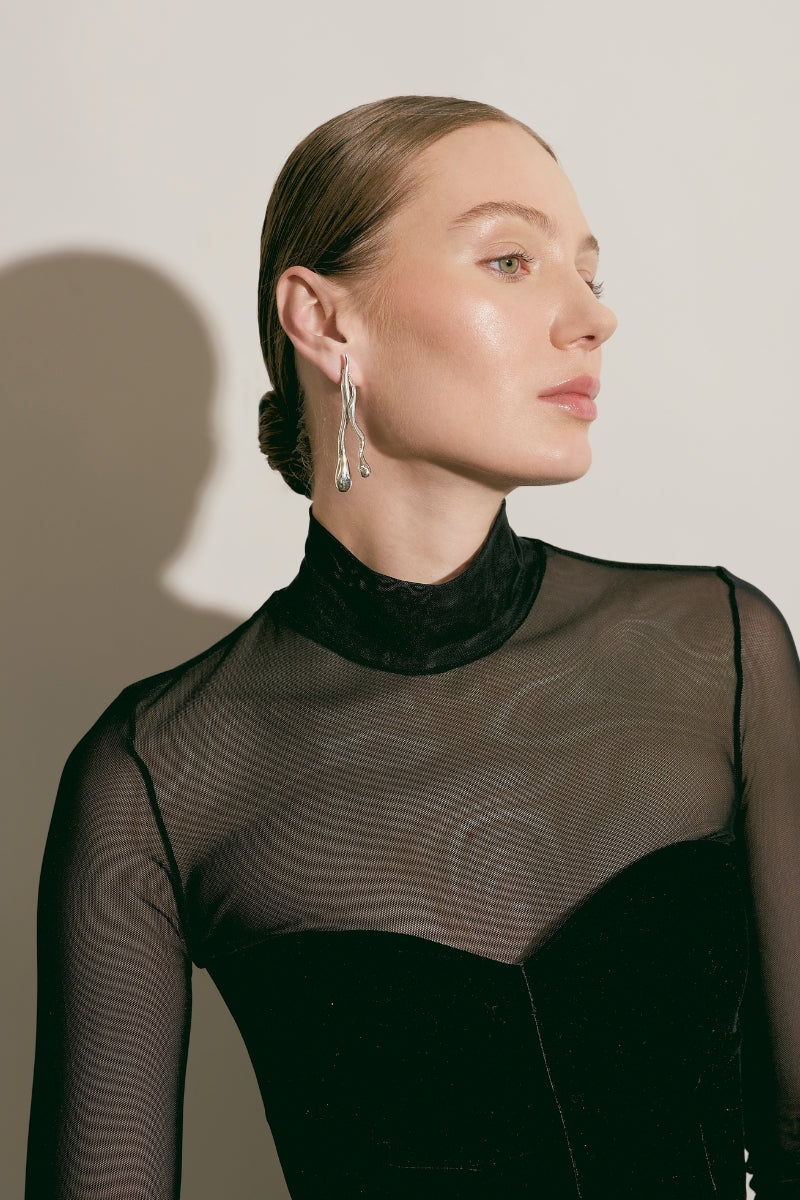 The Origin earrings are very special and versatile as you can remove the second drop earring and wear it with other earrings. Melted shape like a drop and handmade in Colombia. The longest lenght is 7CM.The Origen earrings are made to wear single everyday and add the back part for a more festive and night look. The perfect statement versatile piece you will always need in your jewelry box.