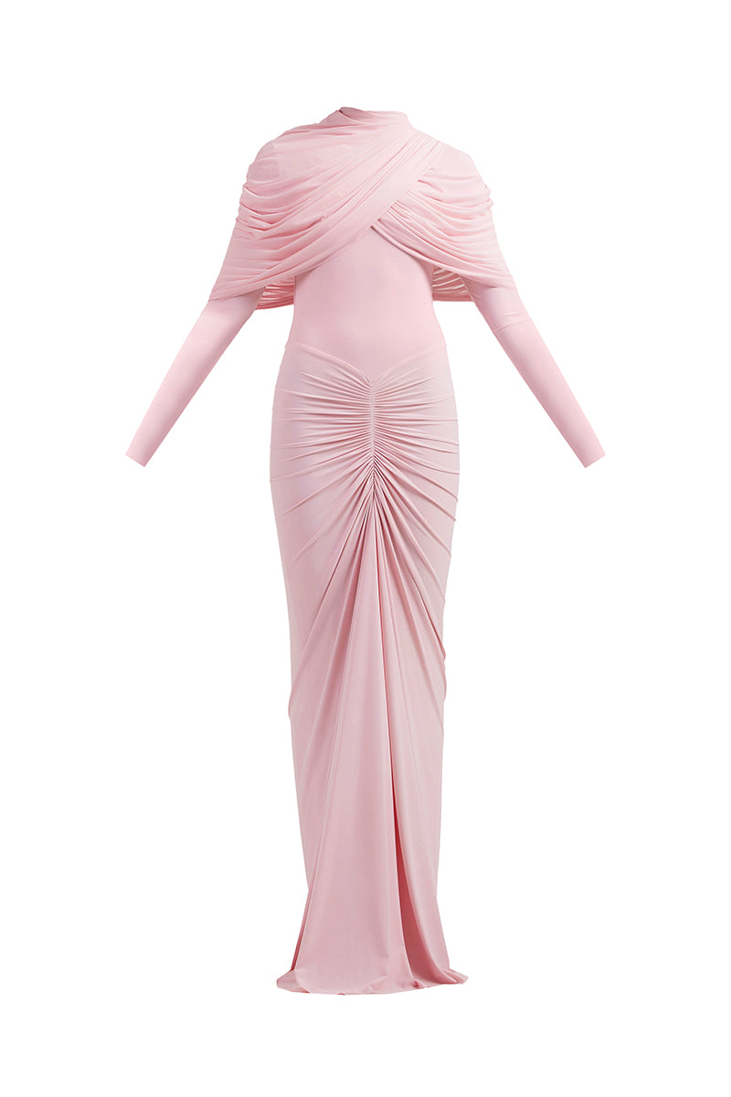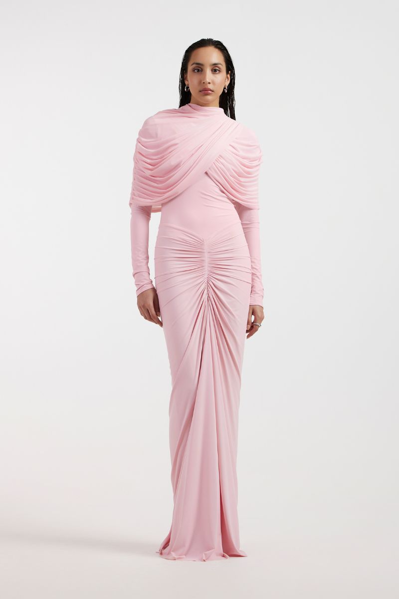 noa draped pink gown