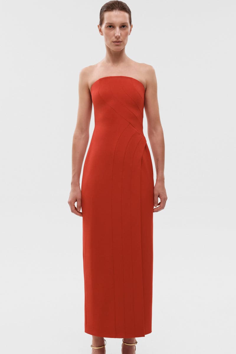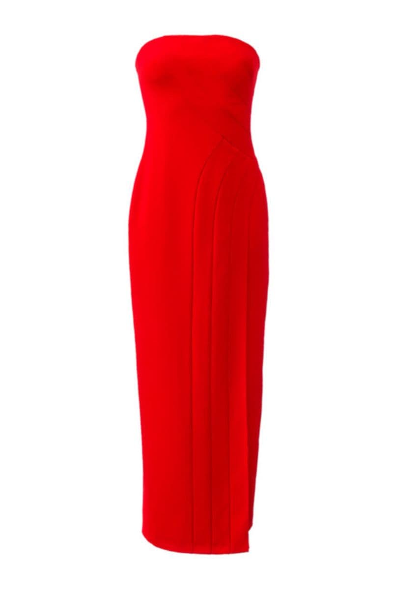 red braid corset maxi dress