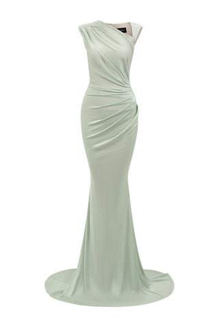asymmetric neckline gown in mint