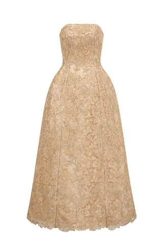 bustier lace maxi dress in beige