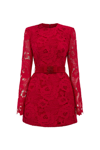 Featuring a sculpted puffed-hip silhouette, this design combines bold structure with delicate floral lace for a harmonious blend of strength and elegance. The long sleeves and fitted bodice highlight timeless sophistication, while the matching waist belt cinches the waist, accentuating a feminine hourglass figure. Ideal for special events, this vibrant red hue ensures you’ll leave a lasting impression wherever you go.