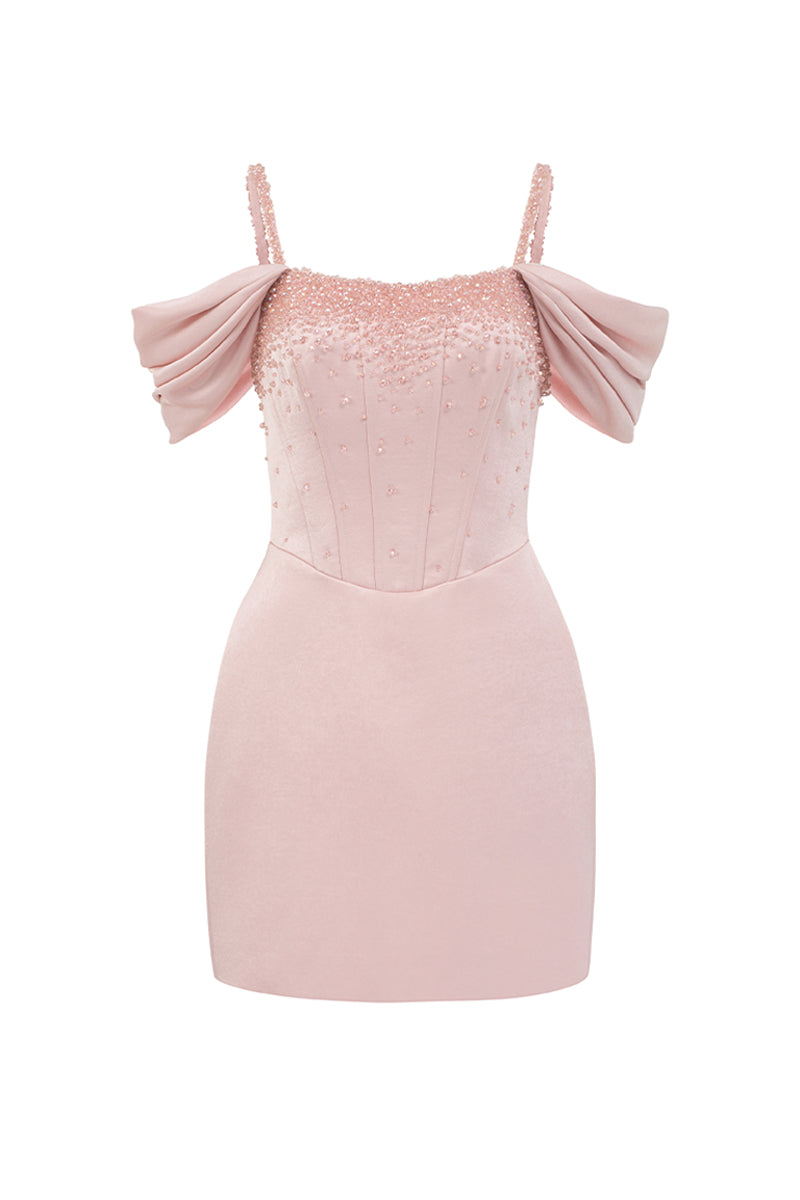 off-shoulder bustier mini dress in light pink