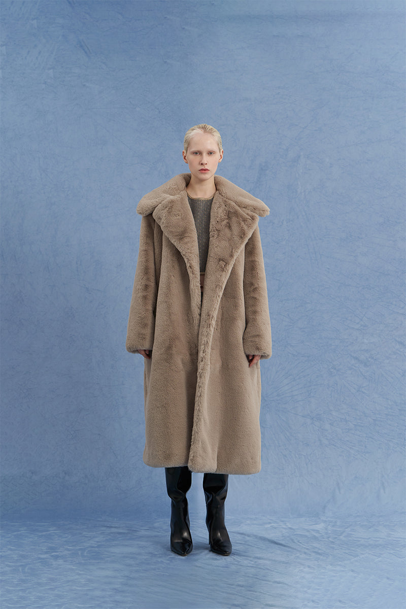oversized shearling coat in brown