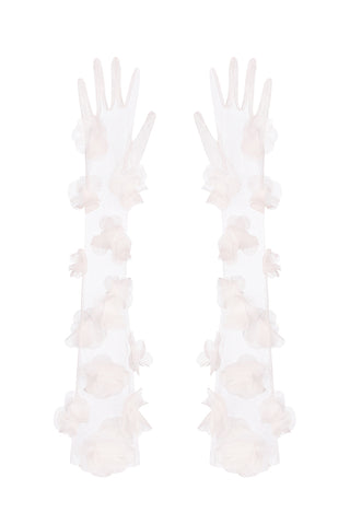 tulle blossom gloves in lily white