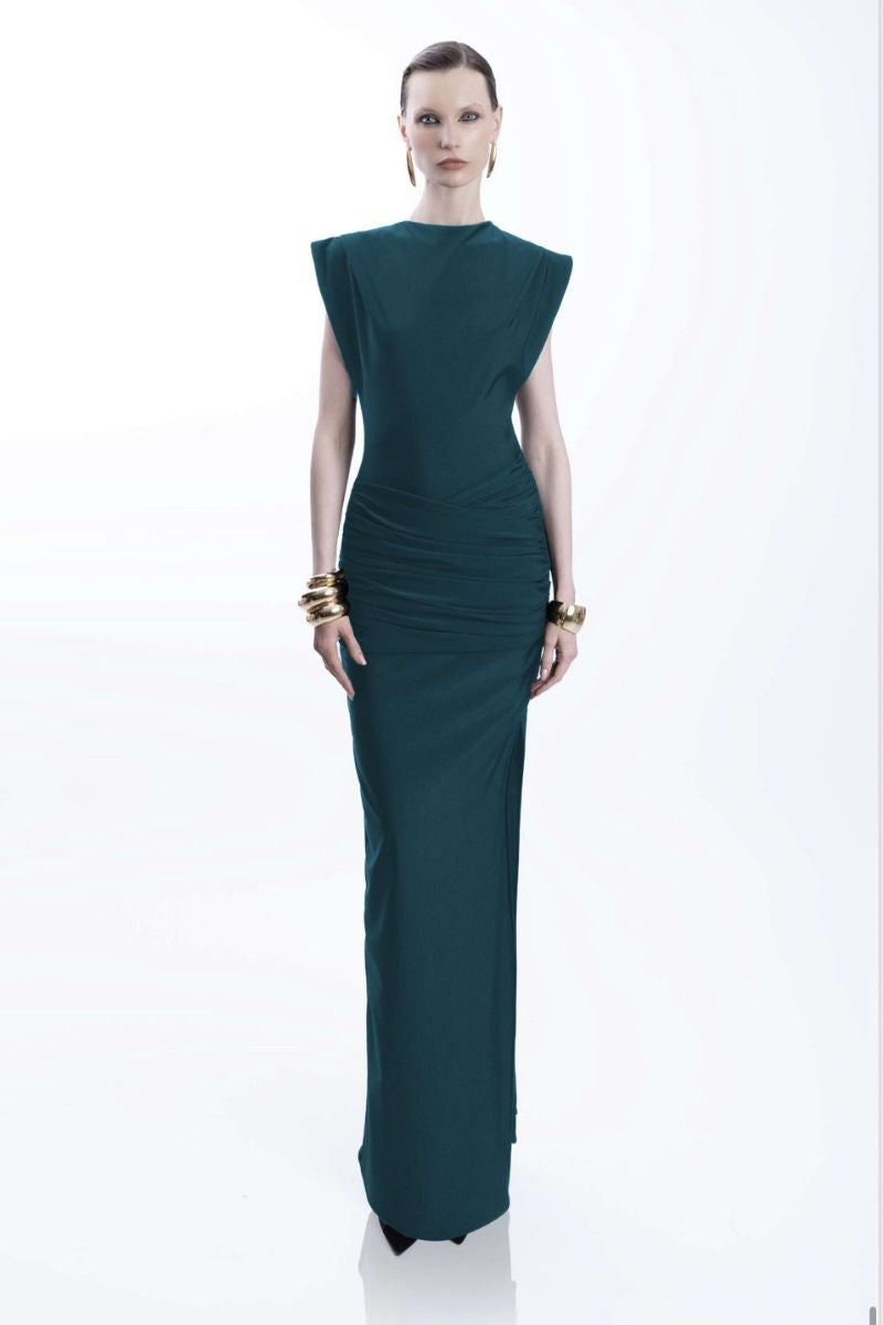 - Structured sleeveless shoulders