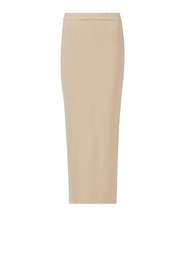 The Knit Pencil Skirt in off-white offers a clean, sculpted silhouette with just the right amount of stretch. Its elasticated waistband ensures a smooth fit while keeping comfort in focus. A timeless essential that pairs effortlessly with the coordinating top.