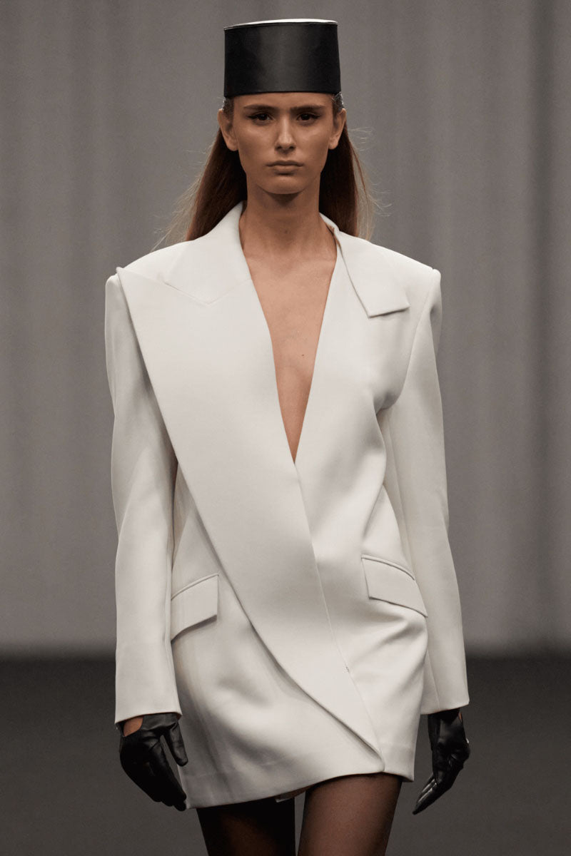 - Off-white crepe fabrication with a structured yet fluid drape