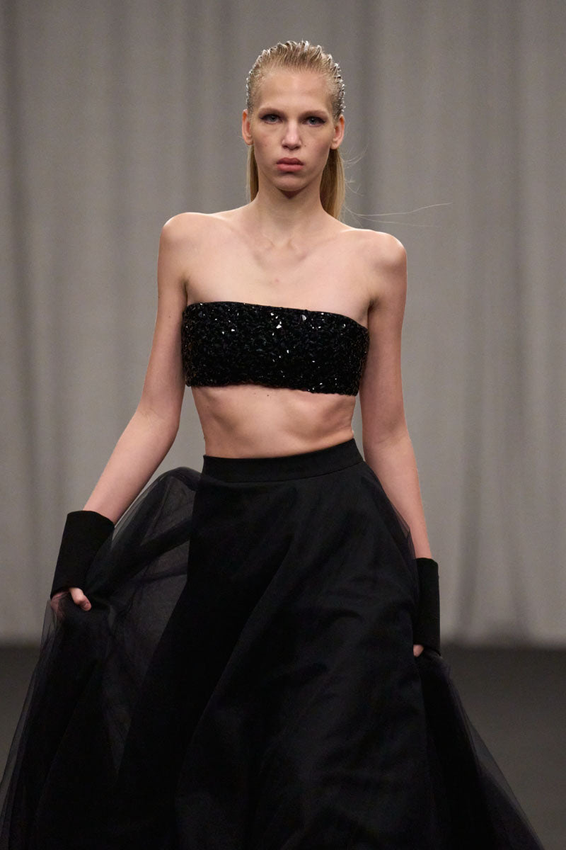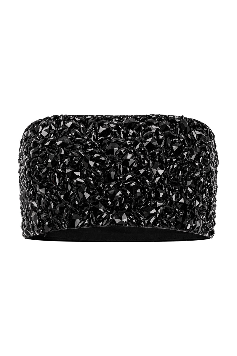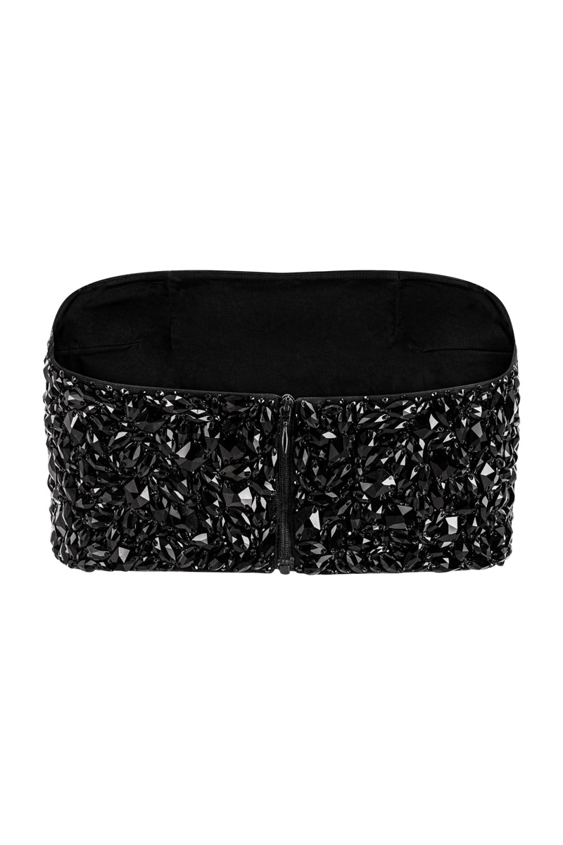 - All-over crystal embellishment on the bralette for subtle shine and light-catching texture