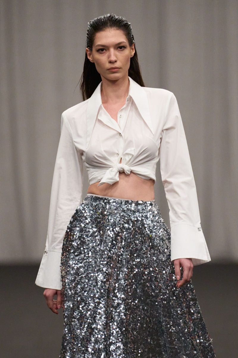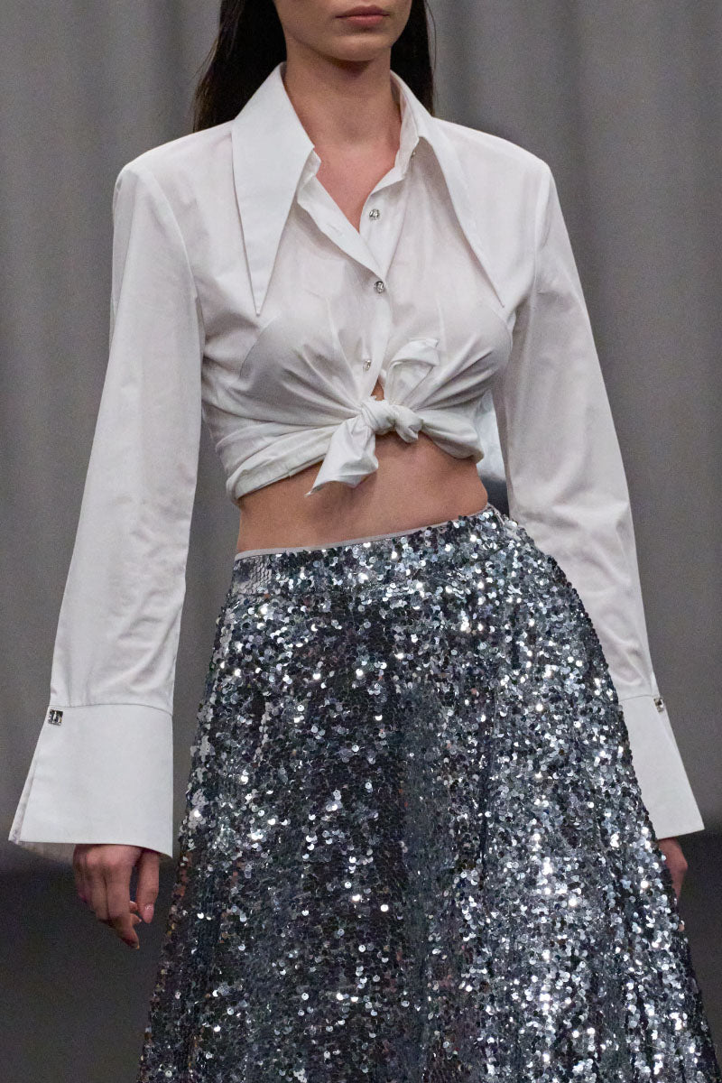 - Crystal-embellished cuff button adding a subtle, elevated accent