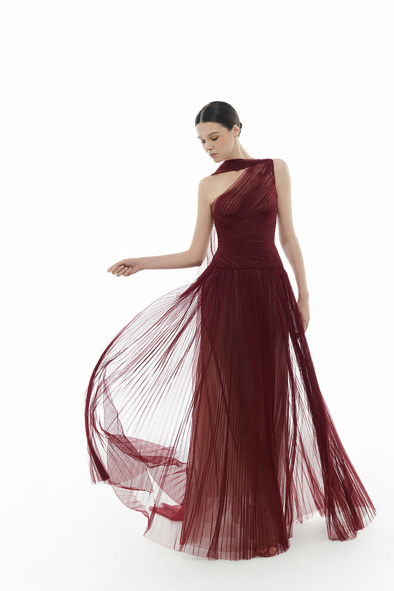 Bordeaux Draped Maxi Dress