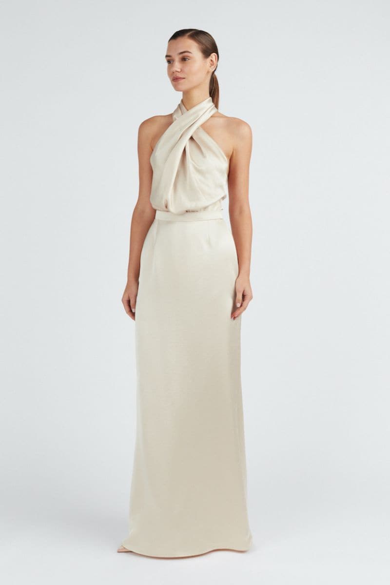ALIUR in champagne is designed to turn heads. ALIUR is set to become an instant classic. A memorable dress for special moments, from red carpet turns to resplendent celebrations. This dress will ensure all eyes are on you, whether it's your engagement party or rehearsal dinner.