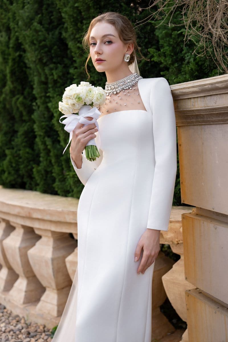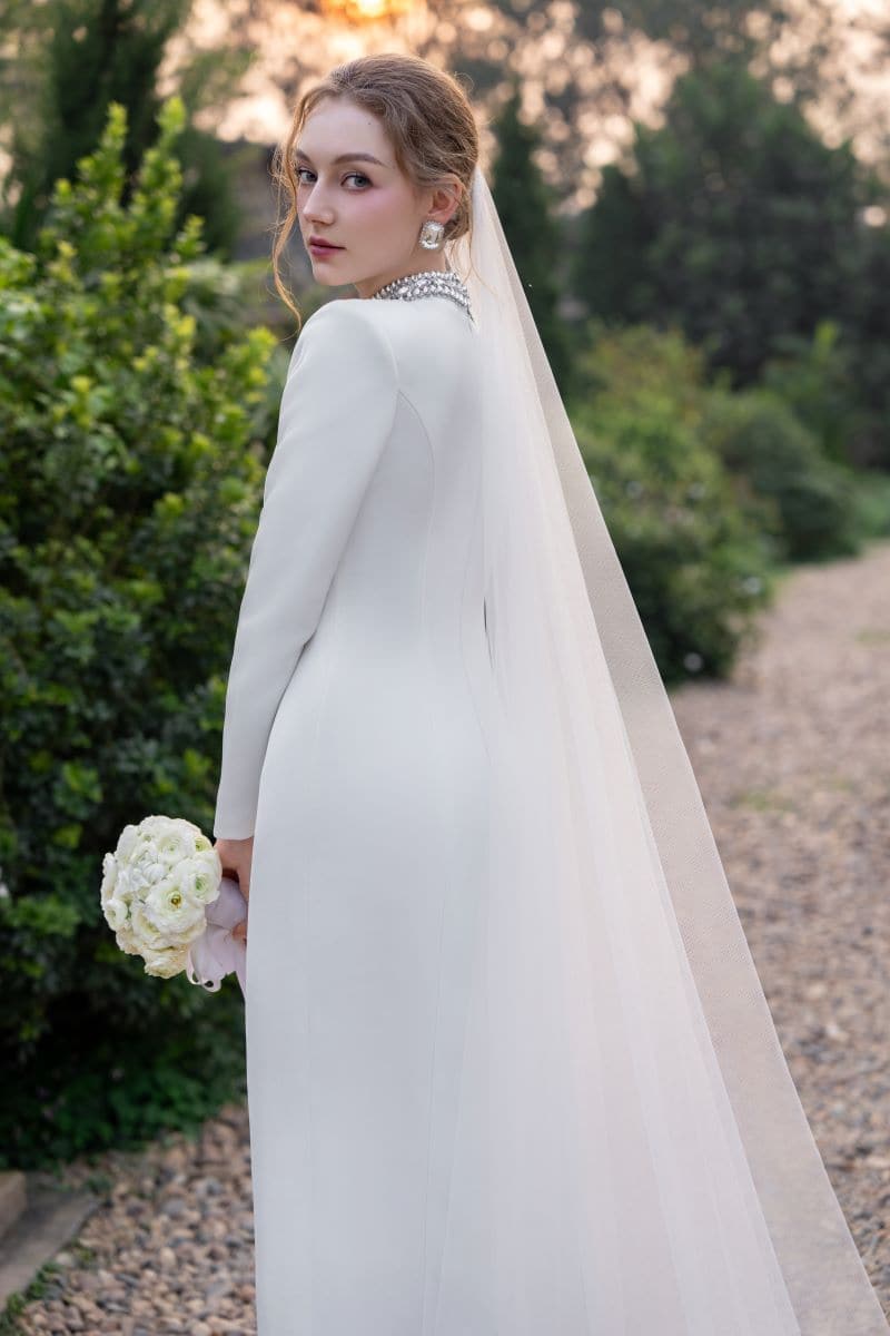 Elevate your style with this luxurious DIANA WHITE TAFFETA CUT-OUT MAXI DRESS. Featuring a bodycon silhouette, long sleeves, and a cut-out design on the upper bust, this dress exudes elegance. The stone embellishments on the neckline are meticulously placed, adding a touch of sophistication to this stunning piece.
