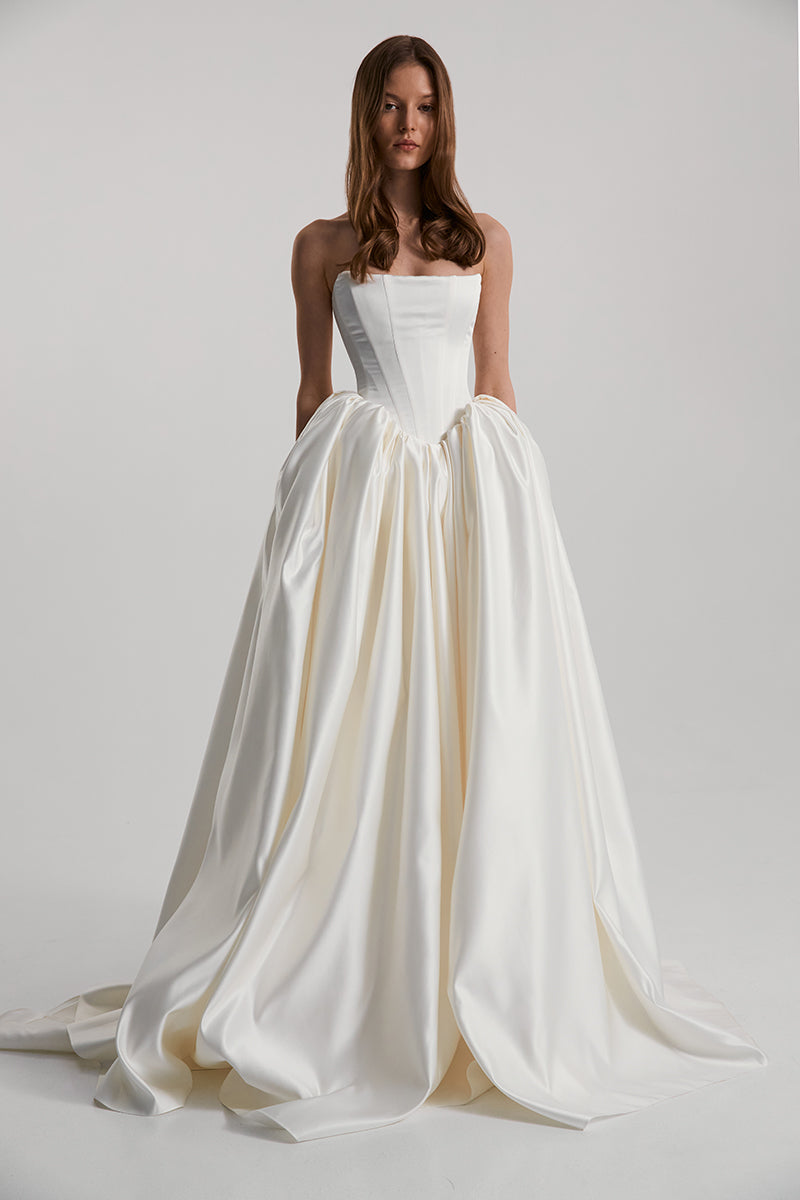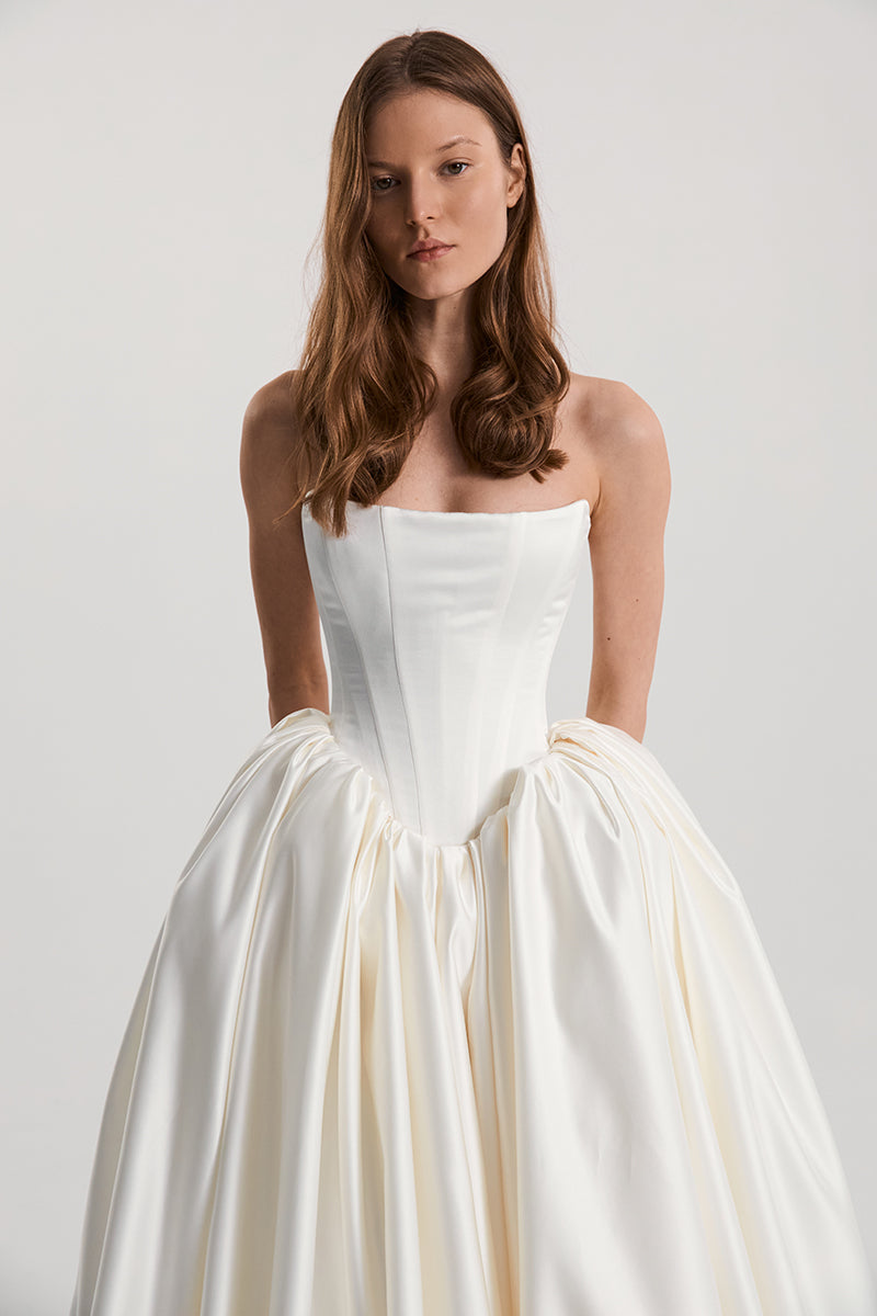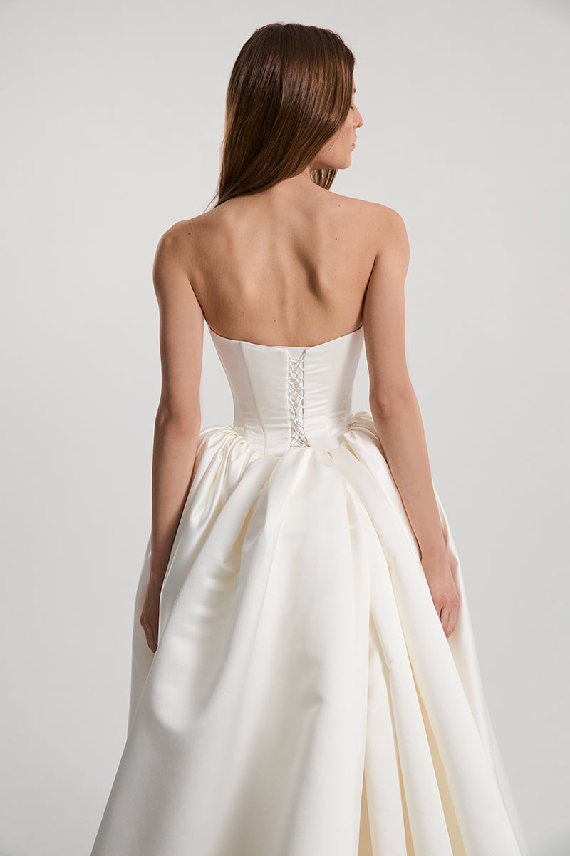 Monetre dresses are made from the highest quality materials in its own workshop The brand's focuses on the value of handcrafting and doesn't look back on seasons and temporary fashion. Commitment to quality is reflected in every seam, pleat and cut, ensuring that each dress is perfectly made and unique.