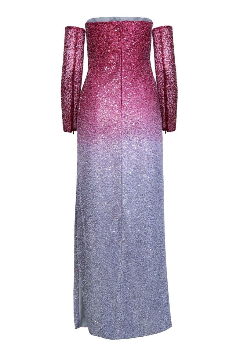 Presenting the Full Embellished Burgundy to Silver Strapless Corset Gown. The corset detail not only provides structural elegance but also beautifully defines the waist, enhancing the gown's femininity. Fastening discreetly at the back, this dress boasts a seamless silhouette. Additionally, this ensemble offers versatility with detachable full embellished sleeves and an optional choker for a personalized touch. A matching silver voile, also optional, is included in the full price, providing yet another styling option.
