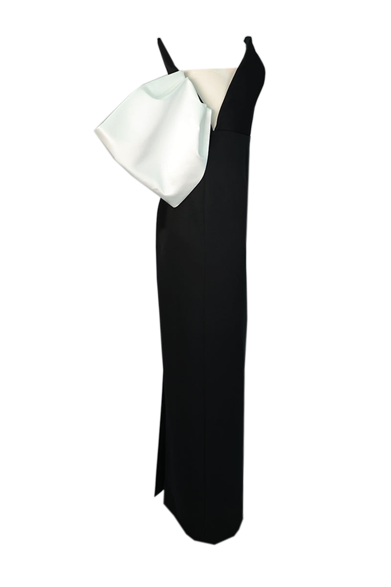 The Circular Bodice Gown is a standout piece, combining elegance with unique design elements. This strapless gown features a meticulously hand-stitched circular corset, providing structure and sophistication. The sheer sides of the corset add a tasteful touch of allure, making the dress both sexy and elegant