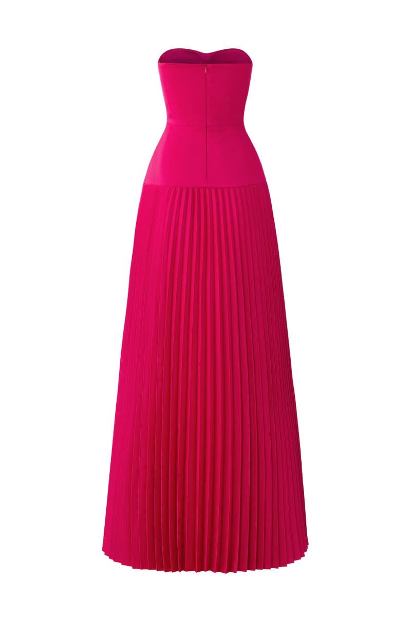 This strapless dress from Tracy is a bold and feminine choice for luxurious parties where everyone shines like a star. With its glamorous details such as pleating and stone embellishment, this dress is sure to make you the centre of attention. The corset-inspired bodice, crafted using Tracy's high-end sewing techniques, strikes a perfect balance between modernity and femininity. The playful wavy details at the bottom of the skirt add a touch of personality and comfort, making this dress both dynamic and graceful.
