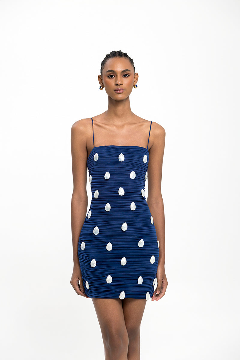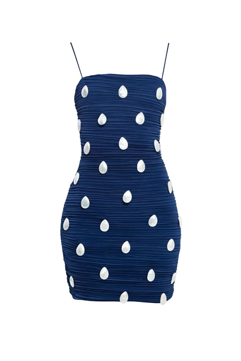 - Straight line neckline, spaghetti strap mini dress