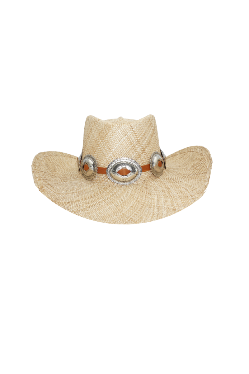 - Handwoven Texan hat in natural color, featuring a classic western MM brim