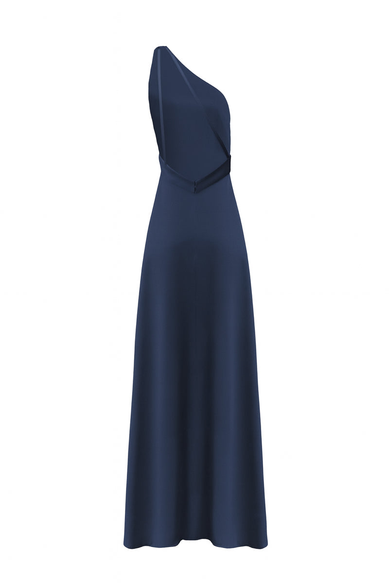 - One-shoulder long dress with an asymmetric neckline