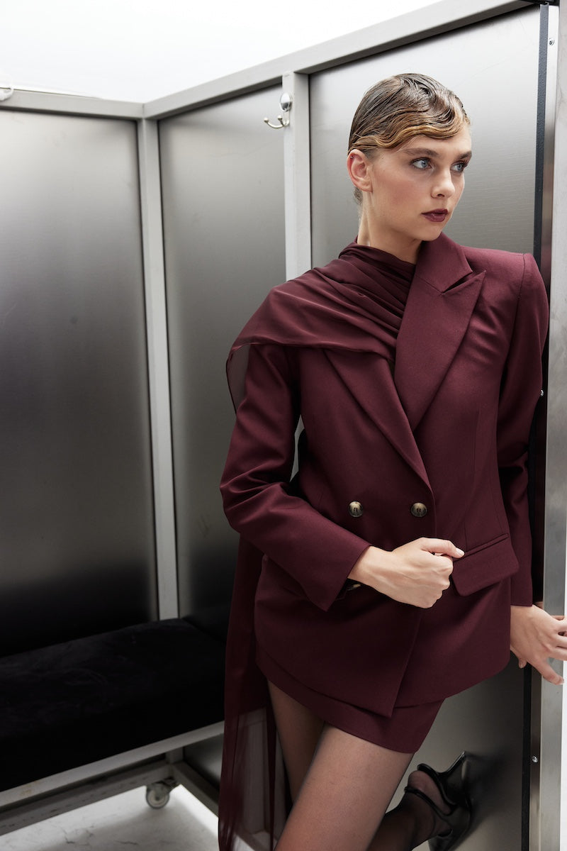 - Styled with the Marde Skirt or Arced Trousers in Bordeaux for a coordinated look