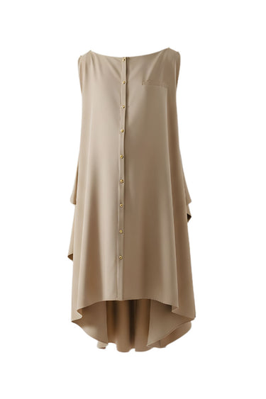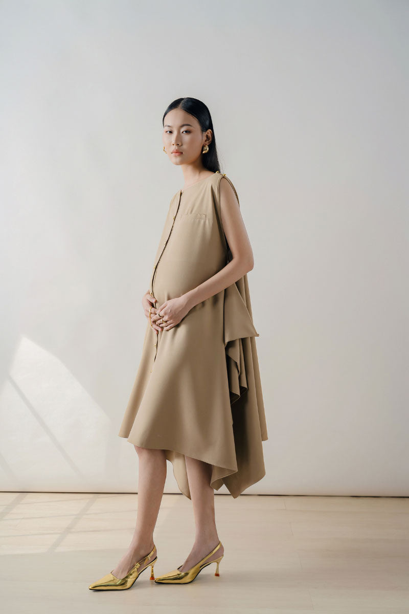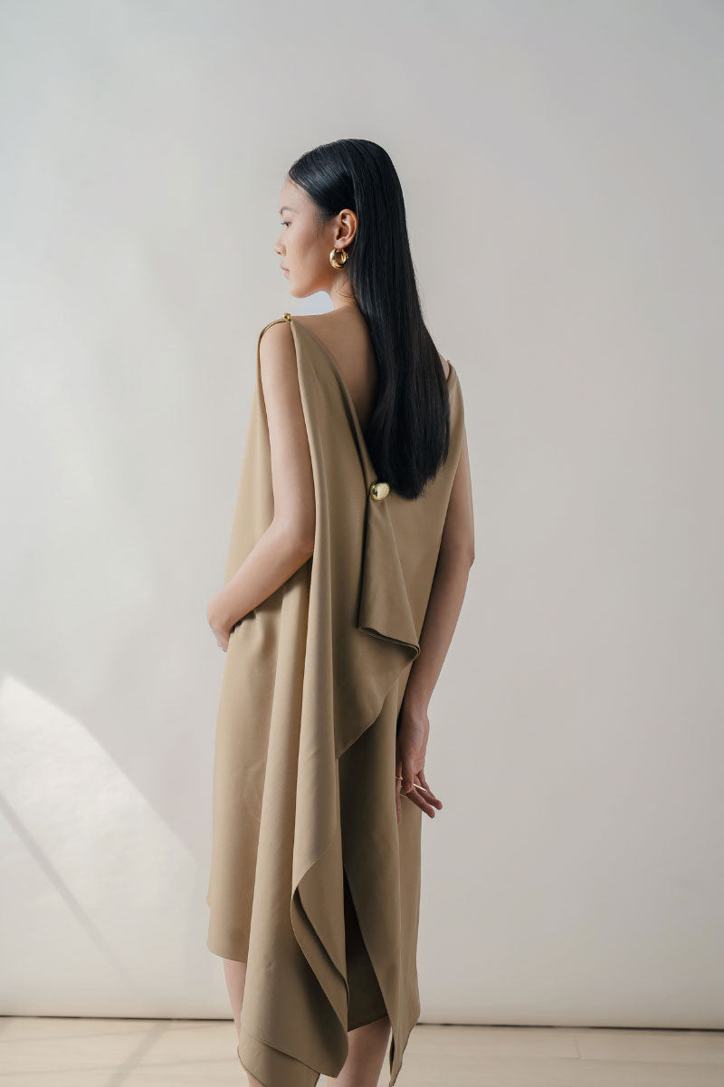 beige sleeveles midi dress