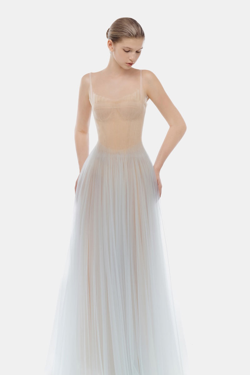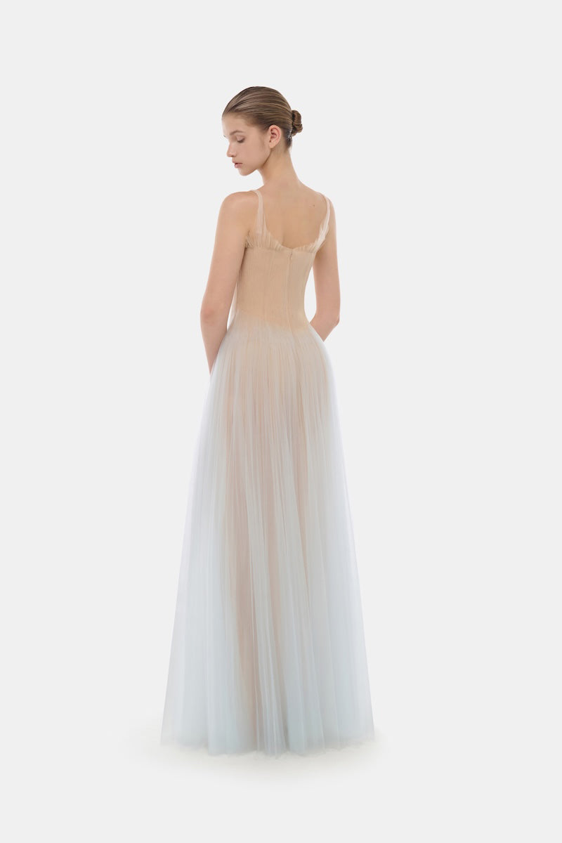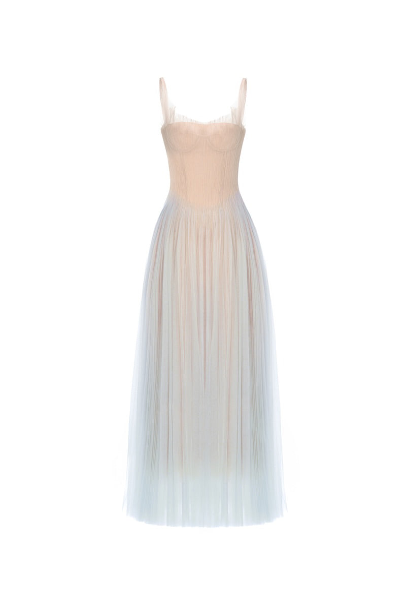 Blue Corset Tulle Maxi Dress