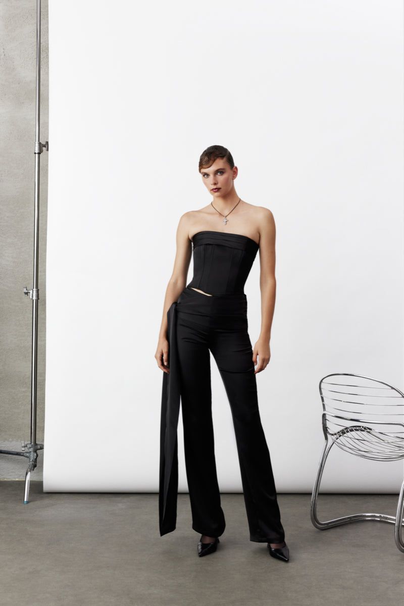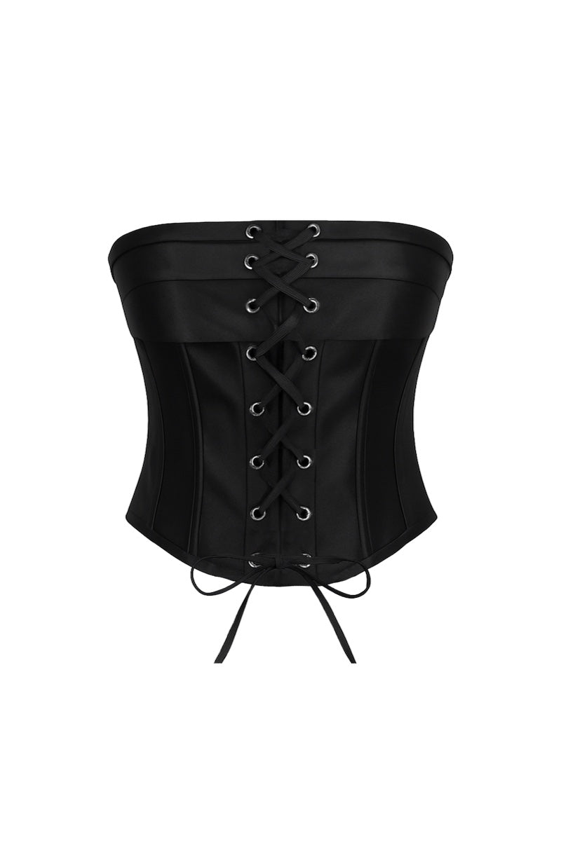 - Strapless corset top crafted from black satin