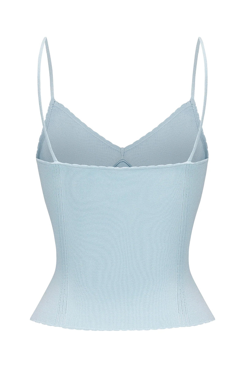 - V-neckline with lace trim