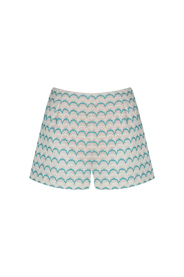 What is summer without a nice pair of shorts? CHLOE SHORT KNIT definitely not your ordinary summer shorts. Made with textured knit material in the ivory color with unique turquoise line accent. Tie it to create some unique statements.
