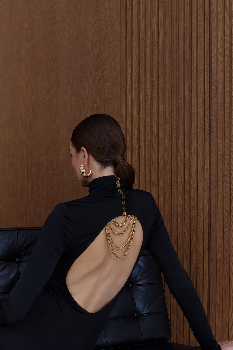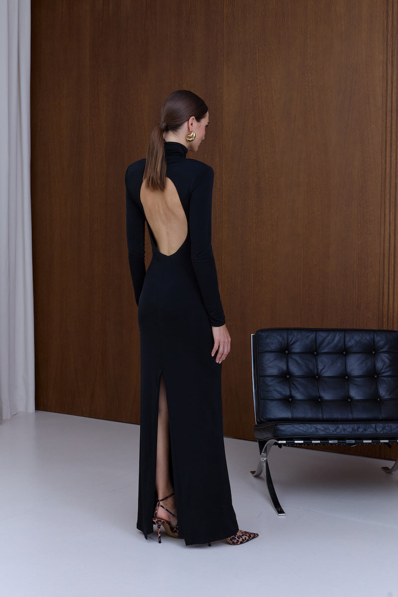 In black, CINTIA becomes the ultimate evening dress - versatile, powerful, and undeniably elegant. Pair it with sleek stilettos and minimal jewelry for a modern, sophisticated look, or add bold accessories for dramatic impact. A dress that makes every entrance unforgettable.