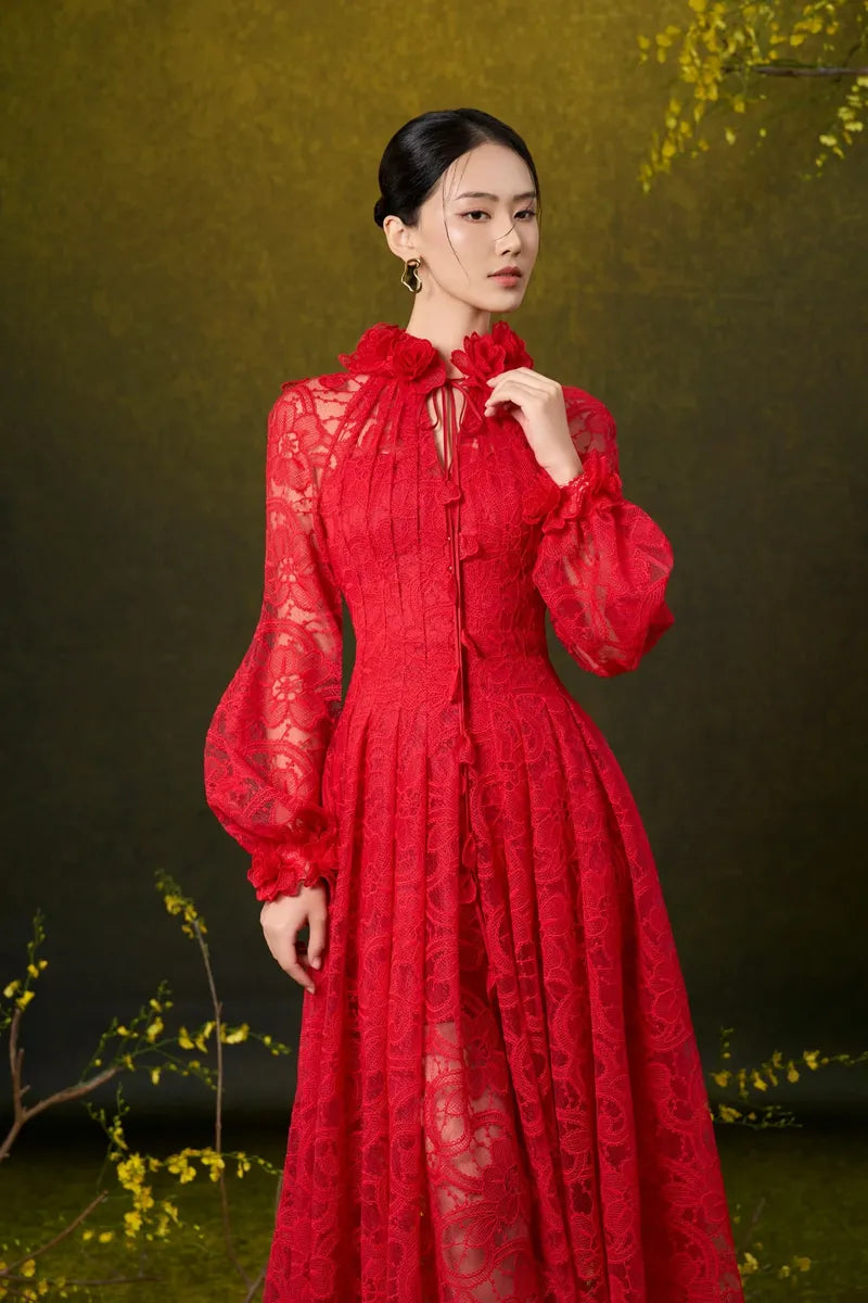 - Embossed handmade lace floral neckline