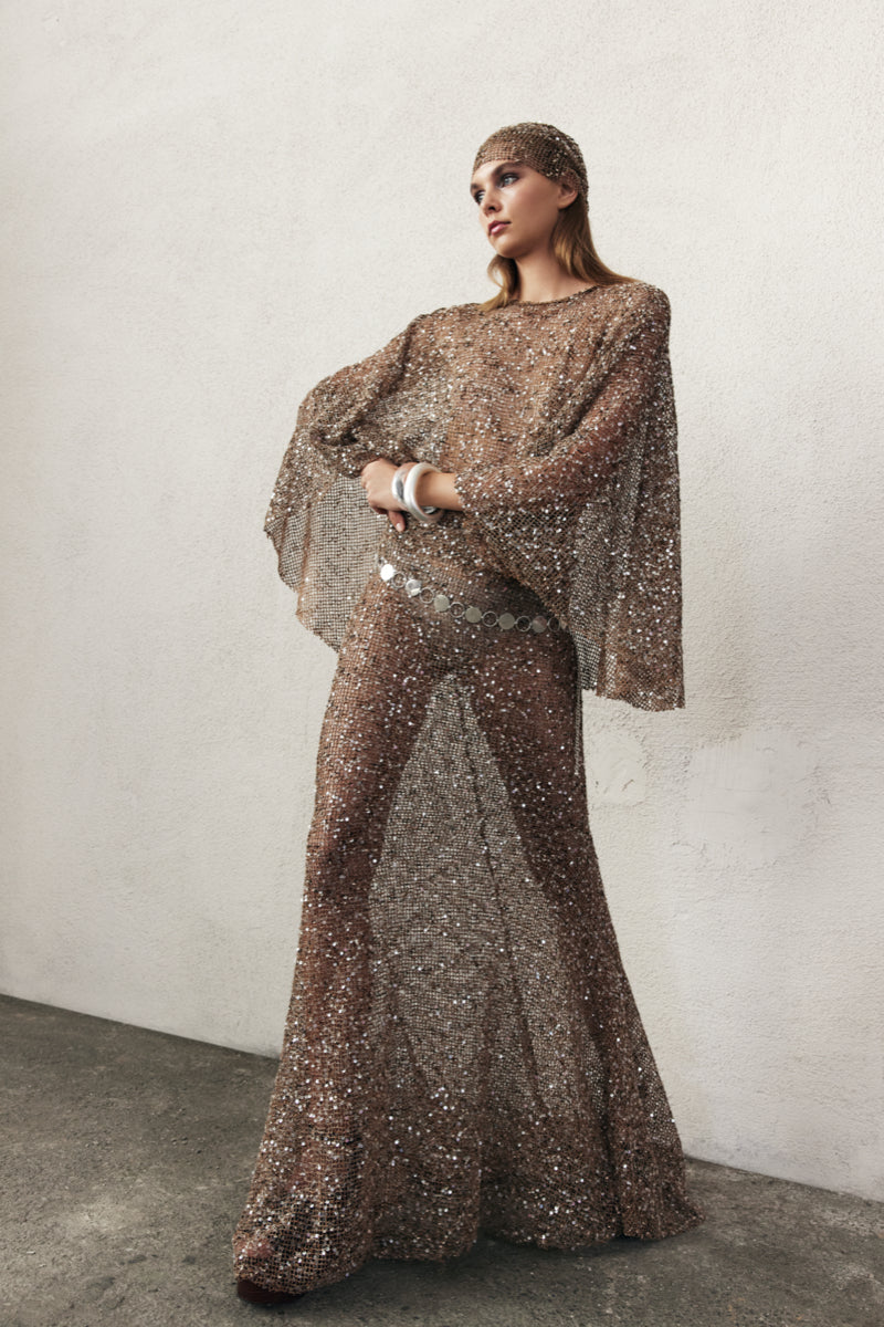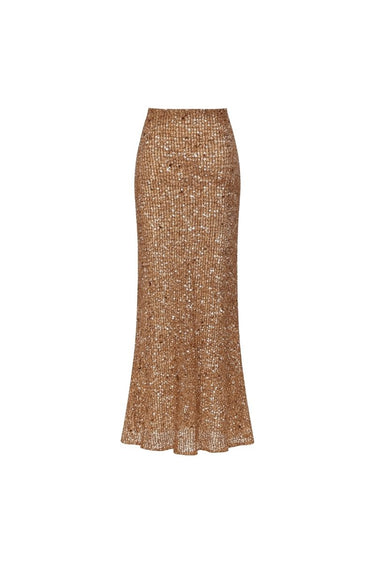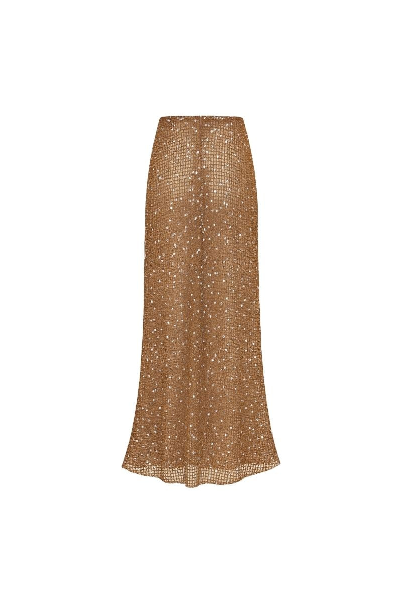 -Long skirt crafted from crochet fabric with a shimmering sequin finish
