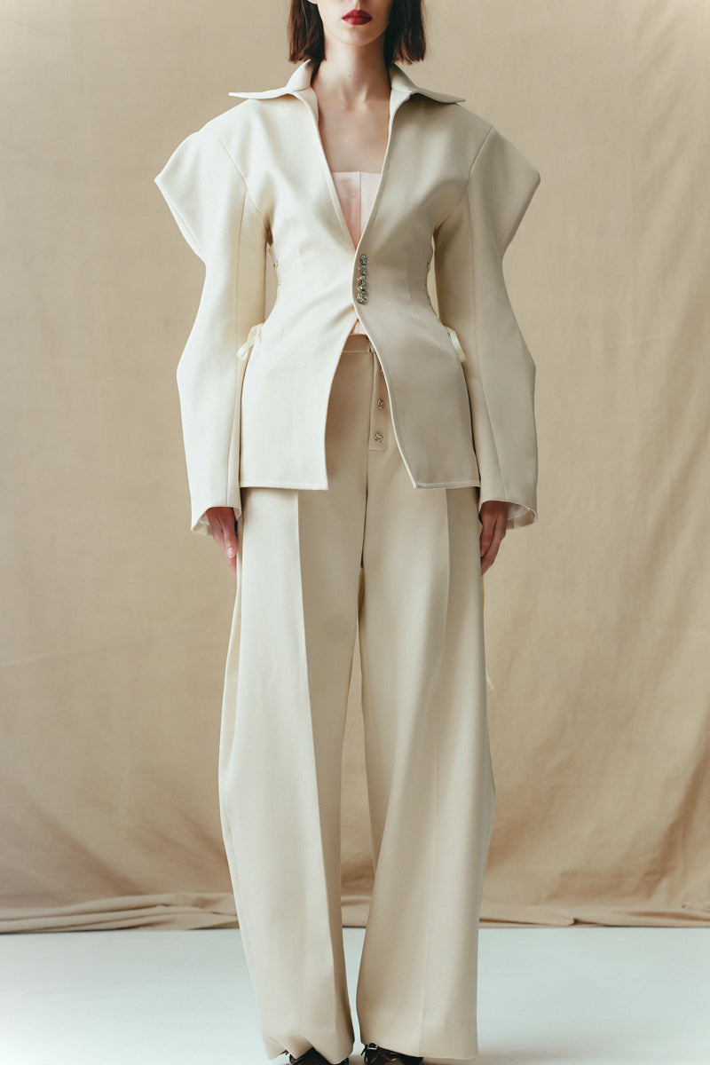 Winning multiple awards on Craftsmanship and Emerging Designer from South East Asia in the last few years, Sean Sheila radiates eastern traditional cultures with bold, structured cuts of the west. The combination of signature embroidery techniques with hardware materials is deeply rooted in the brand's DNA that is all handmade by a team force of disabled tailors.