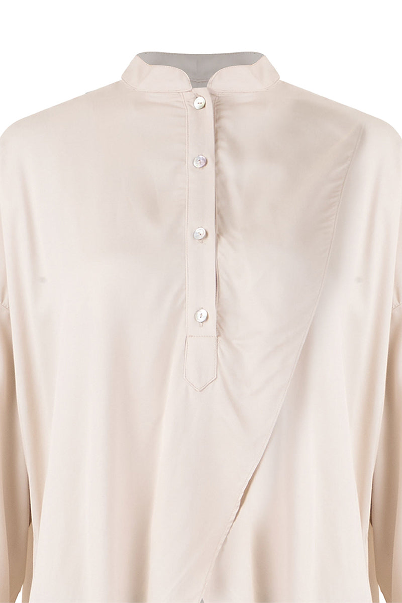 - Front placket with four engraved mother-of-pearl buttons, distinctive of MAZ craftsmanship