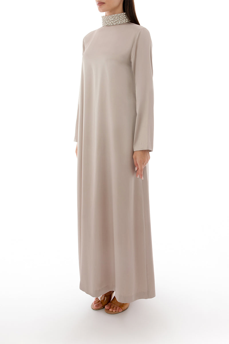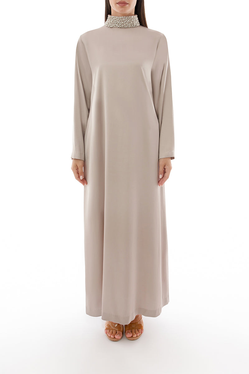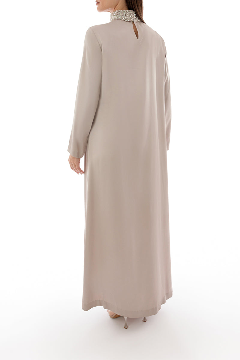 crystal embellished collar detail dress