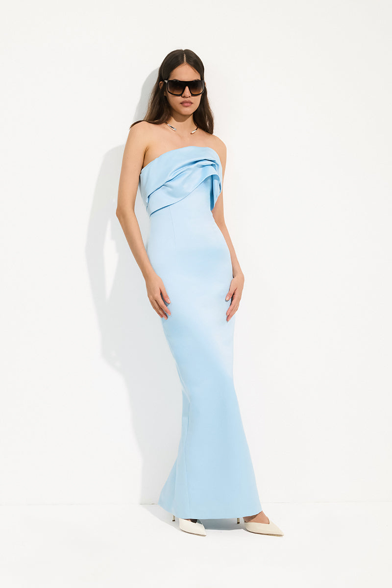 - Strapless draped neckline